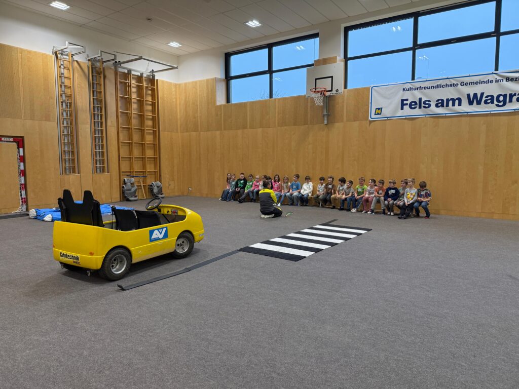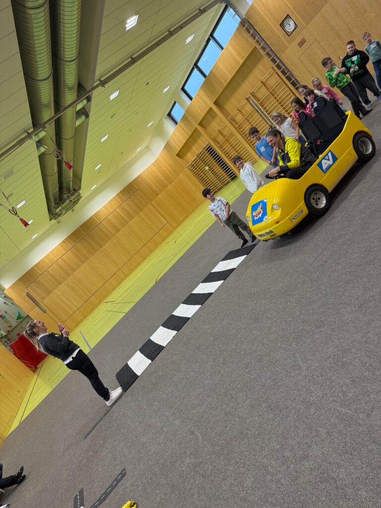 Blick & Klick-Auto. Dabei konnten die Kinder hautnah erleben, wie sich ein plötzliches Bremsmanöver anfühlt.
